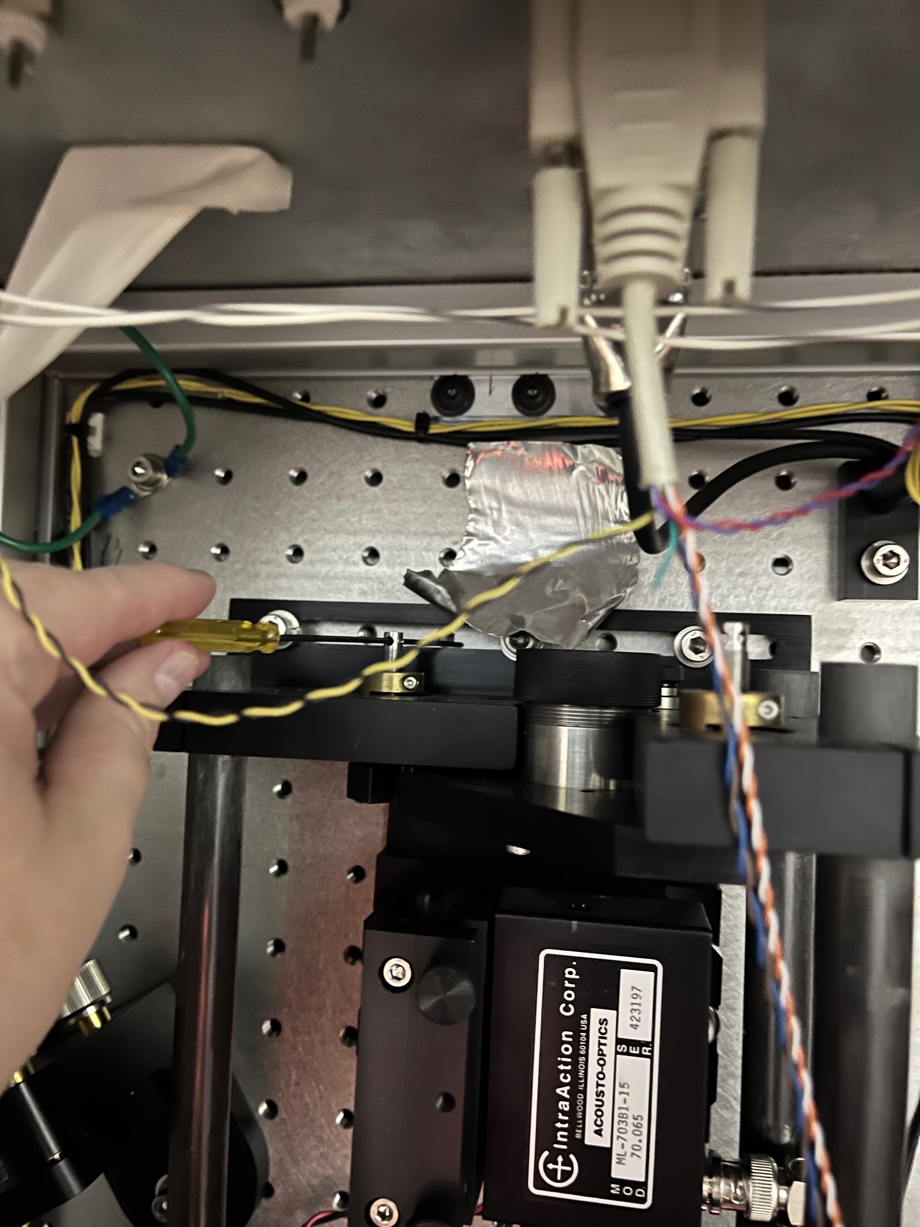 - Get kimwipe + 2 allen wrenches: 2.5mm, 1/8 inch