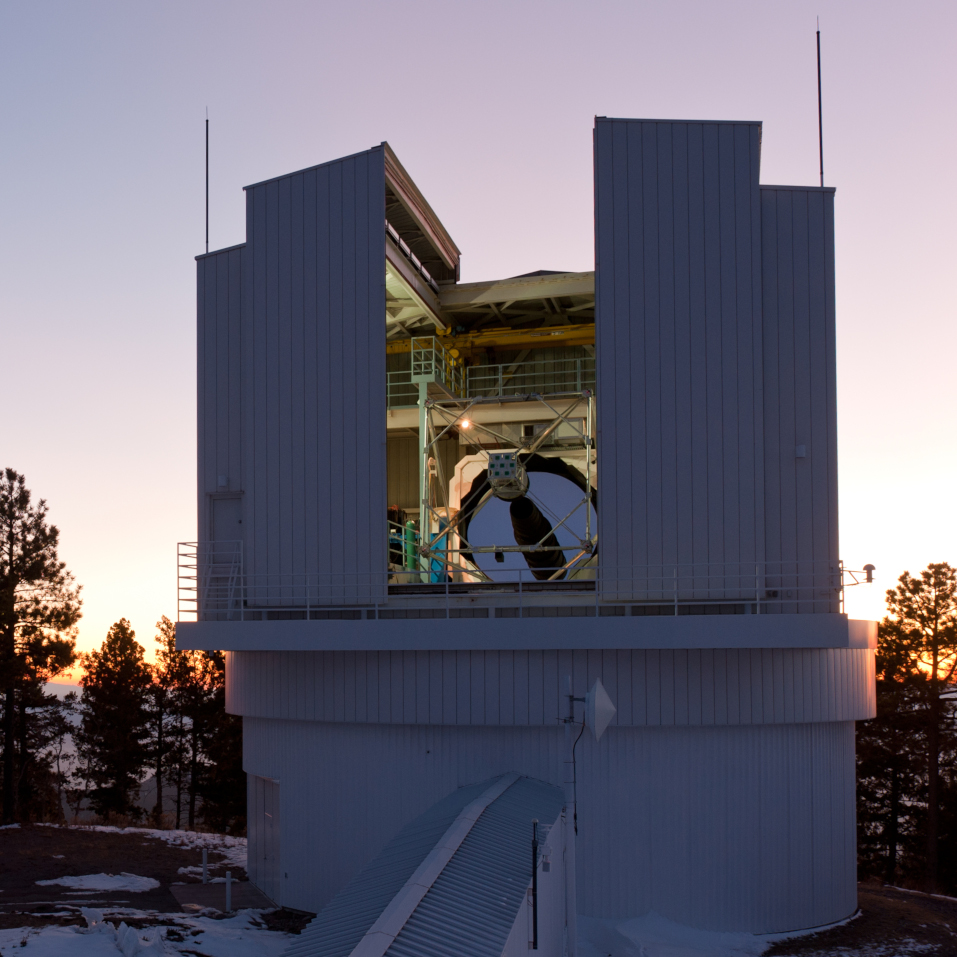 The Astrophysical Research Consortium (ARC) 3.5m telescope is the largest aperture telescope on site. It was constructed in the early 90s by the ARC consortium, and is financially supported by the current ARC partners. The optical design of the telescope is a Ritchey-Chretien, and provides an F/10 beam. It is an alt-az telescope, and instruments can be mounted at either of the two Nasmyth focii or at several other ports on the telescope, each of which can be accessed by rotating the tertiary mirror.
